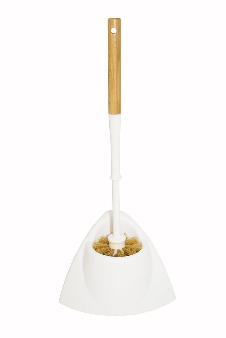 • فرشاة تنظيف المرحاض مع حامل بلاستيكي بلون أبيض