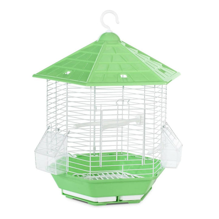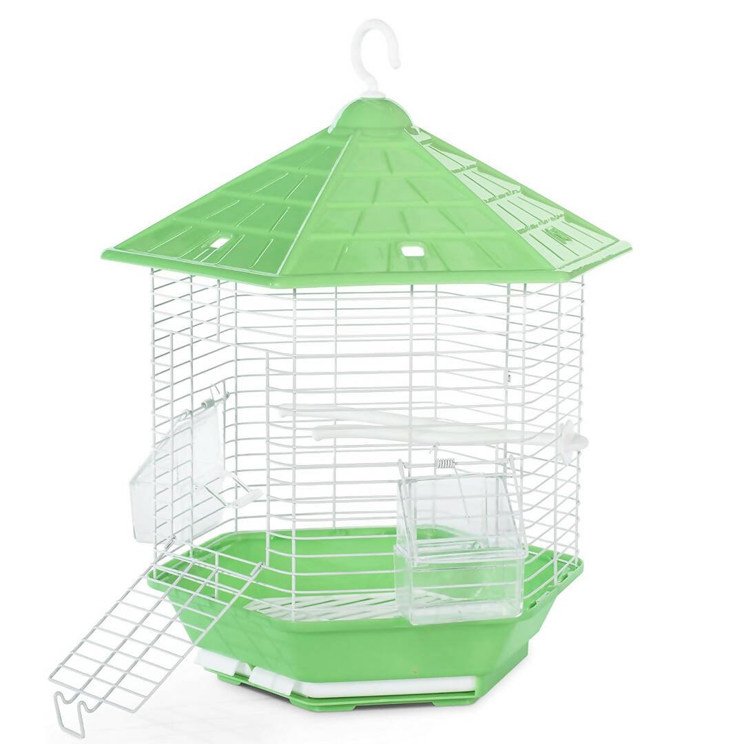 - قفص للطيور معدن مع مجثم وارجوحة أخضر اللون