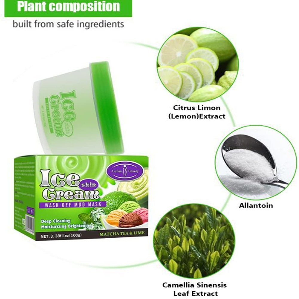 - قناع الوجه بالأيس كريم خلاصة شاي ماتشا وليما 100 جرام