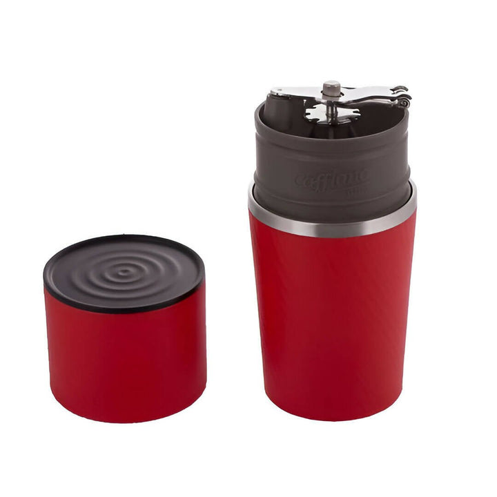 - تتضمن مطحنة سيراميك يدوية بذراع قابل للطي وبنتوءات مخروطية، إبريق للصب، مرشح للقهوة بفلتر ستانلس ستيل محفور، وكوب متنقل. تعد كل هذه الأدوات مدمجة لتكون أداة واحدة شاملة