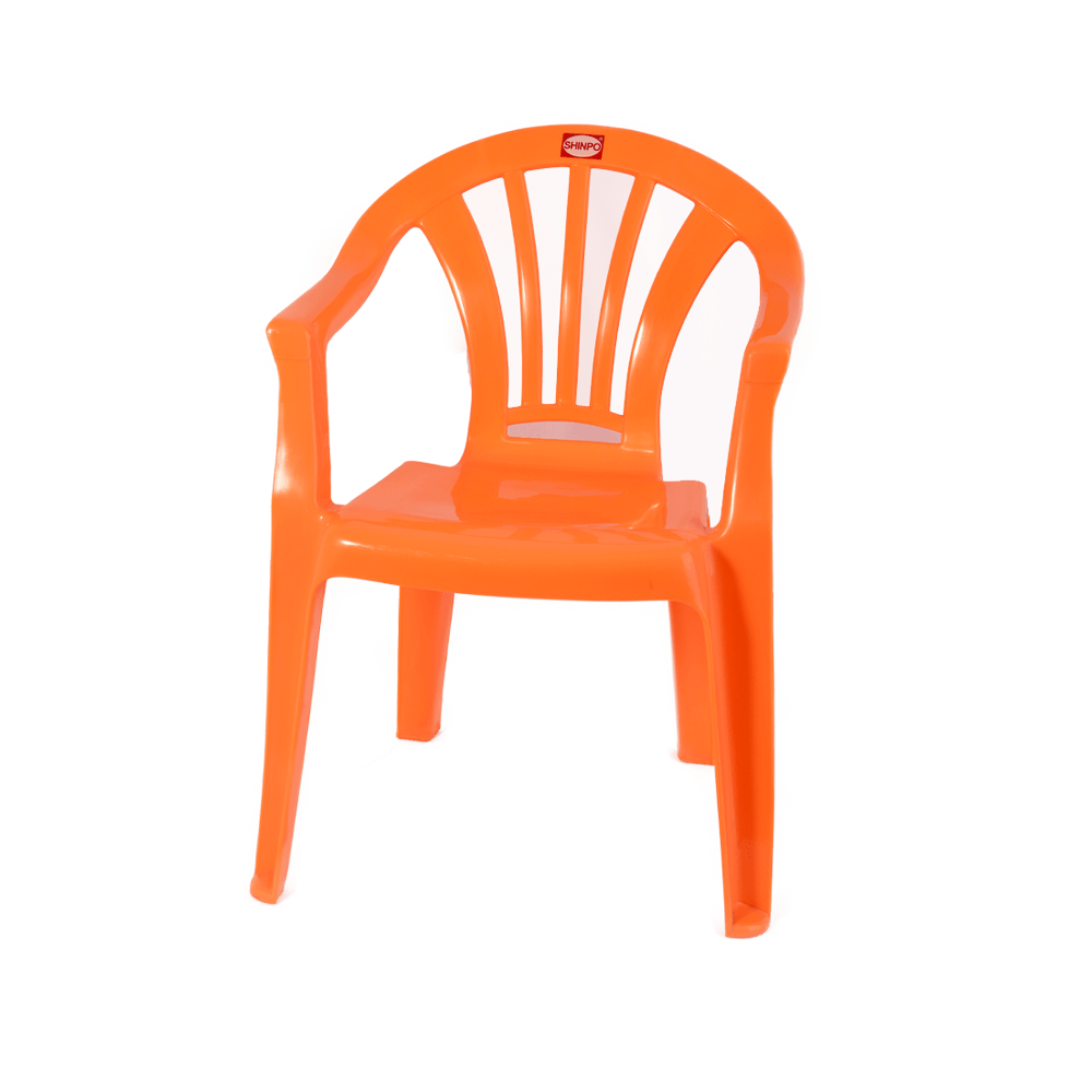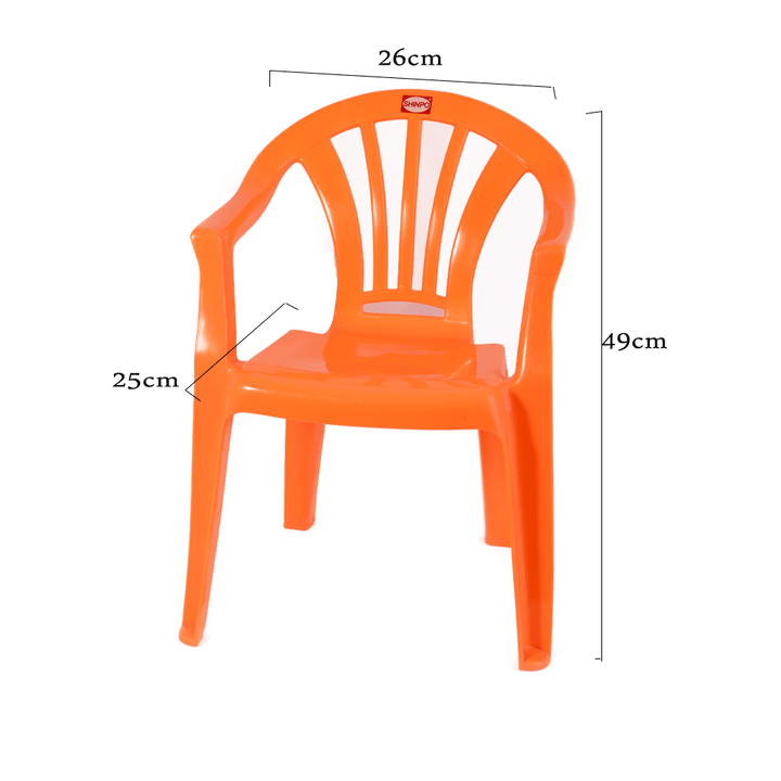 كرسي اطفال بلاستيك برتقالي بذراعين