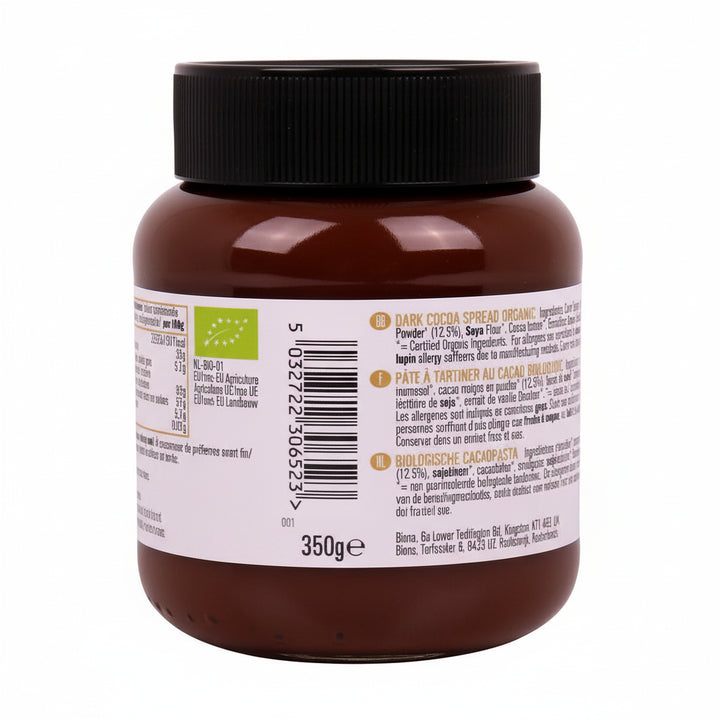كريمة كاكاو داكنة عضوية 350 جم من بيونا – مثالية للخبز والعصائر والمخبوزات