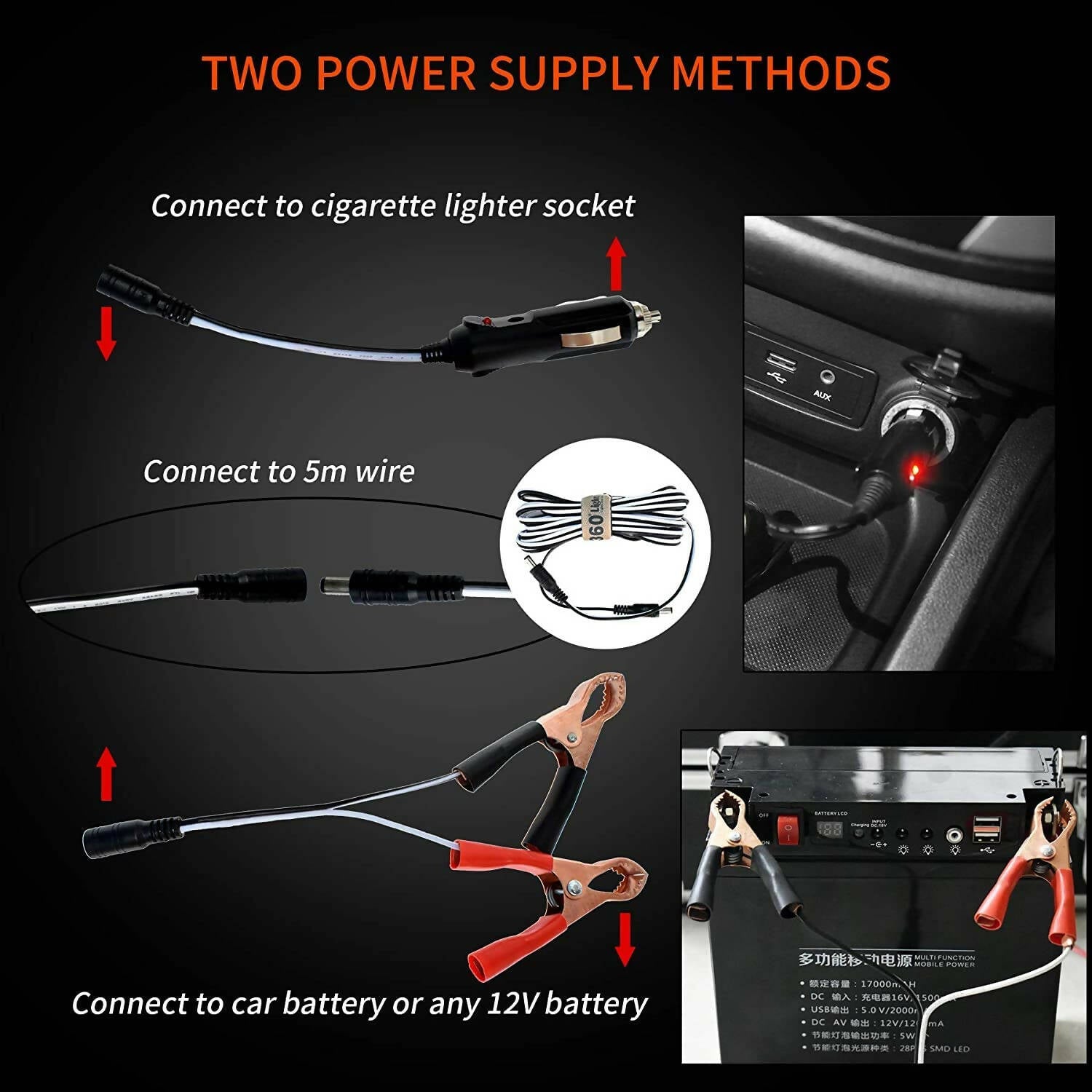 - يعمل من بطارية السيارة أو من المقبس داخل السيارة