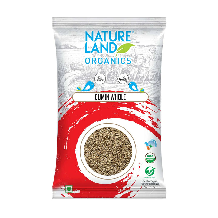 احصل على نكهة دافئة وترابية مع الكمون الكامل العضوي من NatureLand، مثالي للطهي والتحميص، غني بالفيتامينات والمعادن الأساسية.
