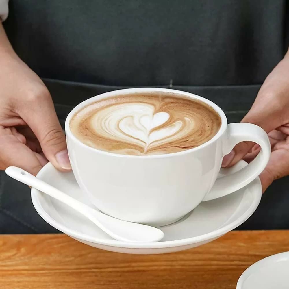 - صحن يساعد على منع الانسكابات عند حمل الكوب كما يلغي الحاجة إلى قاعدة الاكواب