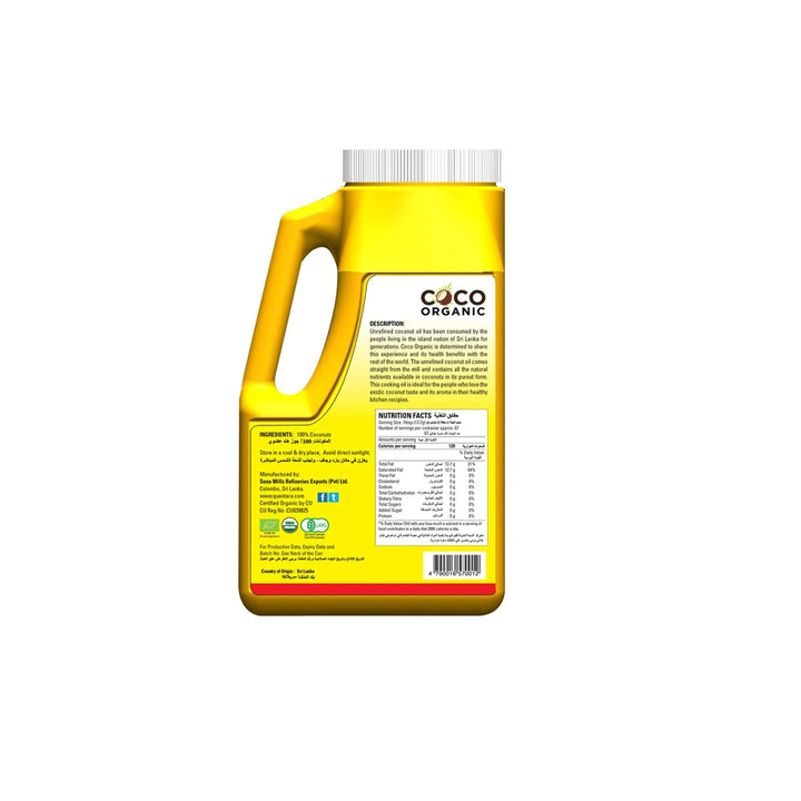 اكتشف تجربة زيت جوز الهند العضوي غير المكرر من كوكو، المستخلص مباشرةً من معاصر جوز الهند في سريلانكا. يحتفظ هذا الزيت الطبيعي 100% بجميع العناصر الغذائية والفوائد الصحية لجوز الهند، مع رائحة ونكهة طبيعية مميزة تضيف لمسة استثنائية على وصفاتك اليومية. خالٍ من المواد الحافظة تمامًا، ومثالي للطهي، الخبز، القلي، أو إضافته إلى المشروبات والوصفات الصحية.
