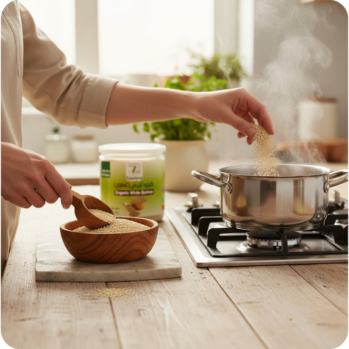 كينوا زادنا البيضاء العضوية هي خيار غذائي صحي ومثالي لمن يبحثون عن حبوب غنية بالعناصر الغذائية وخالية من الغلوتين. تتميّز بجودتها العالية واعتمادها العضوي، مما يجعلها مناسبة لمختلف الأنظمة الغذائية.