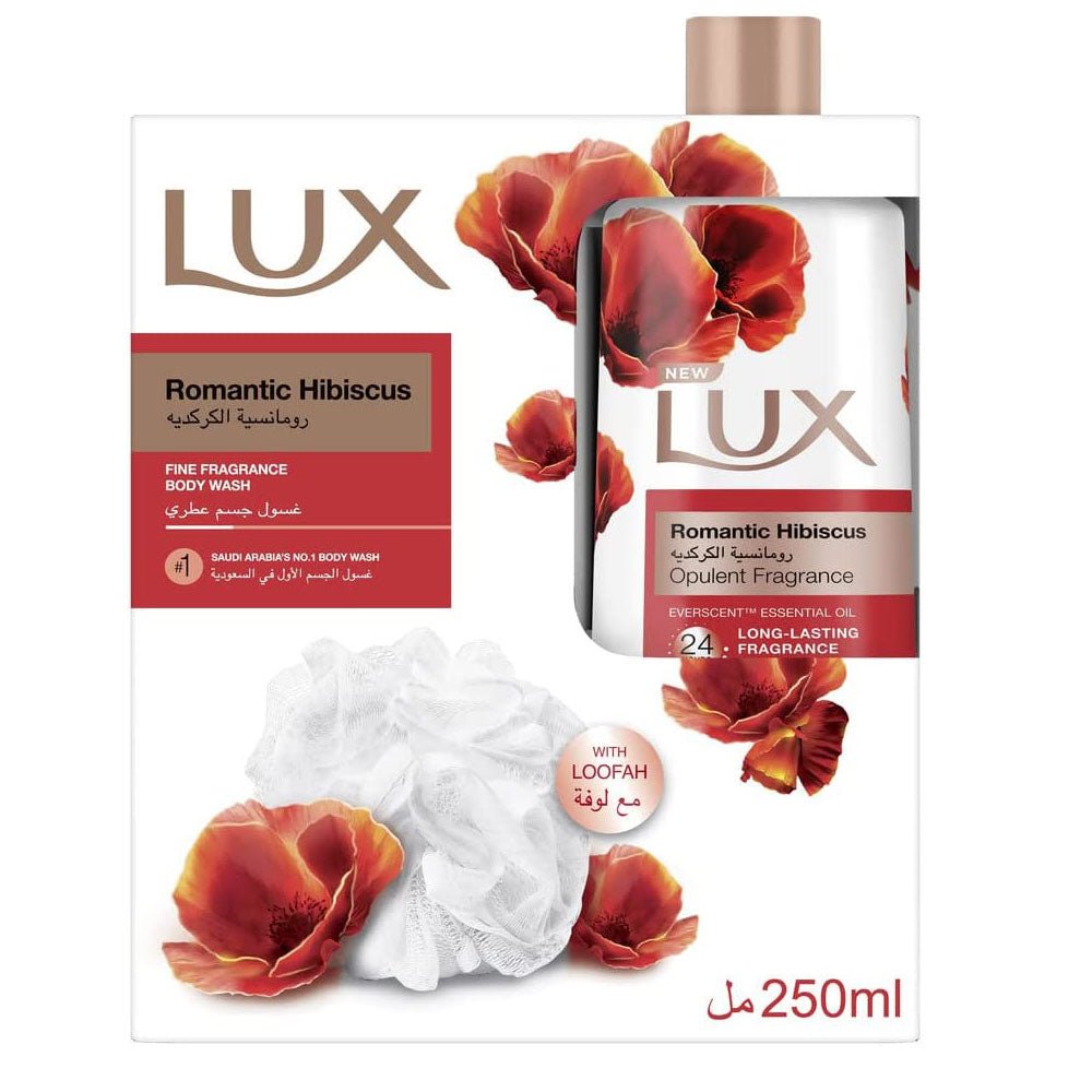 - لوكس غسول جسم عطري رومانسية الكركدية مع ليفة 250 مل