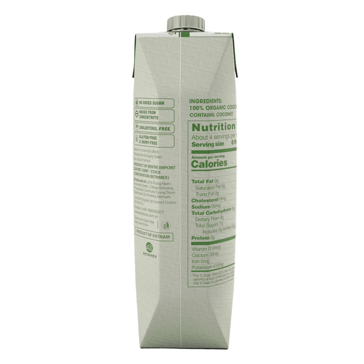 استمتع بانتعاش طبيعي مع ماء جوز الهند العضوي كوكو زيم المحضر من ثمار جوز الهند المزروعة عضويًا في فيتنام. مشروب نقي وخفيف بدون أي سكريات مضافة، غني بمضادات الأكسدة وملائم لكل من يبحث عن خيار صحي ومنخفض السعرات. مثالي للترطيب اليومي أو بعد التمارين، وخالٍ تمامًا من المواد الحافظة والألوان الصناعية.