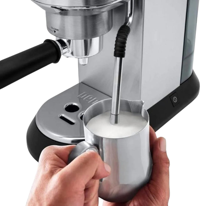 ارتقِ بتجربة تحضير القهوة في المنزل مع ماكينة ديديكا آرتي الشهيرة من ديلونجي، التي تجمع بين التصميم الإيطالي الأنيق والأداء الاحترافي في جهاز نحيف بعرض 15 سم فقط، ليُضفي لمسة فاخرة على مطبخك دون أن يشغل مساحة كبيرة. تم تجهيزها بمضخة بضغط 15 بار وتقنية Thermoblock لضمان استخلاص مثالي للإسبريسو بنكهة قوية وكريما مخملية غنية. كما تأتي بذراع تبخير احترافي My LatteArt لتجهيز رغوة حليب عالية الجودة تناسب فن اللاتيه والكابتشينو.