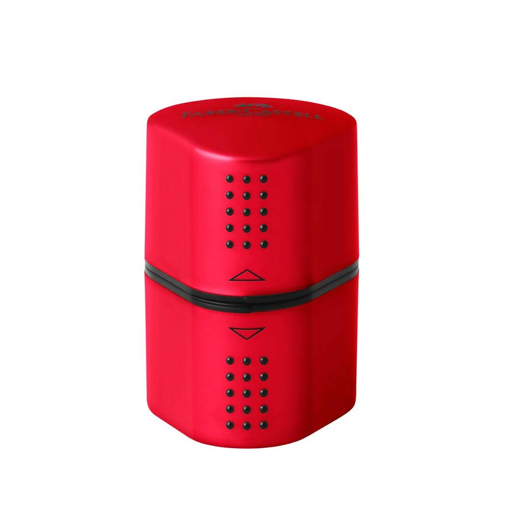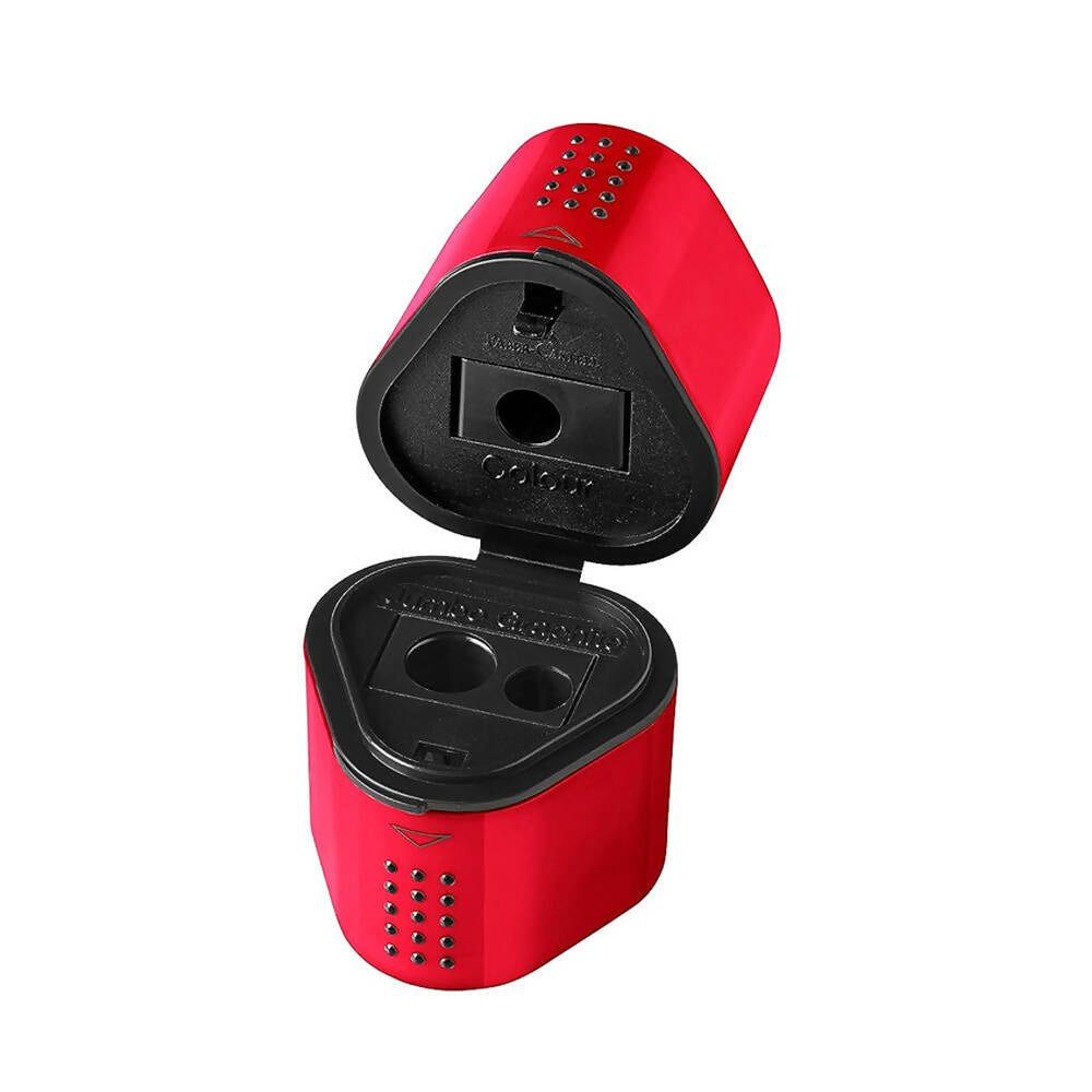 - مبراية أقلام رصاص وأقلام ملونة بلون أحمر