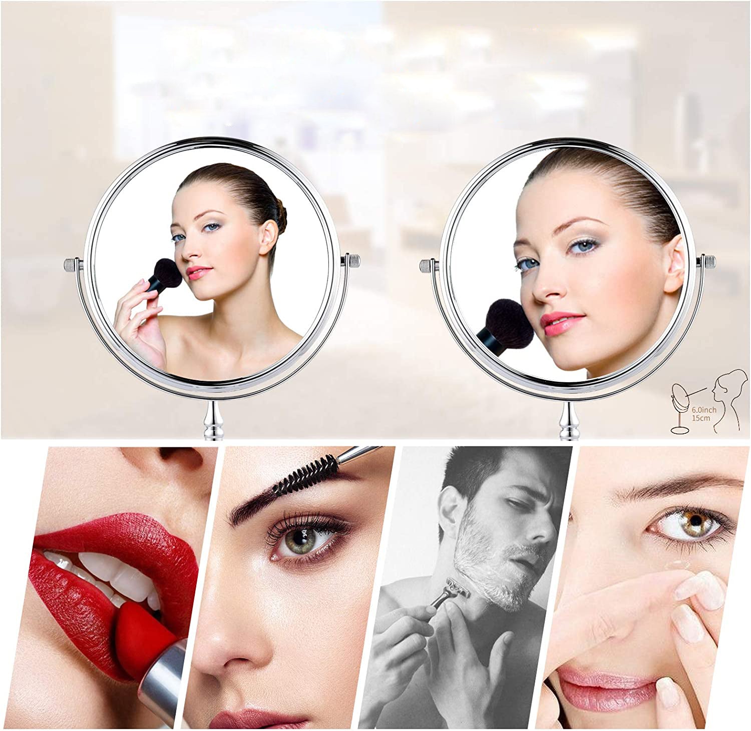- مرآة تكبير 3 أضعاف، مرئية بوضوح للمكياج الجزئي. لن تفوتك أي من التفاصيل المحددة