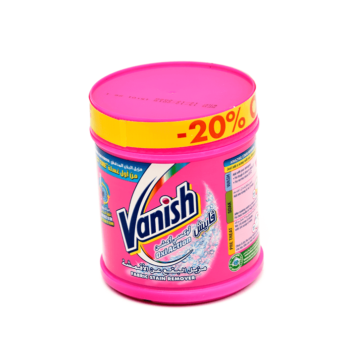 • بدءا من تلك التي يمكنك أن تراها بوضوح وحتى أصعب البقع التي قد تكون خفية. مسحوق فانيش أوكسي أكشن آمن للاستخدام سواء للملابس الملونة أوالبيضاء