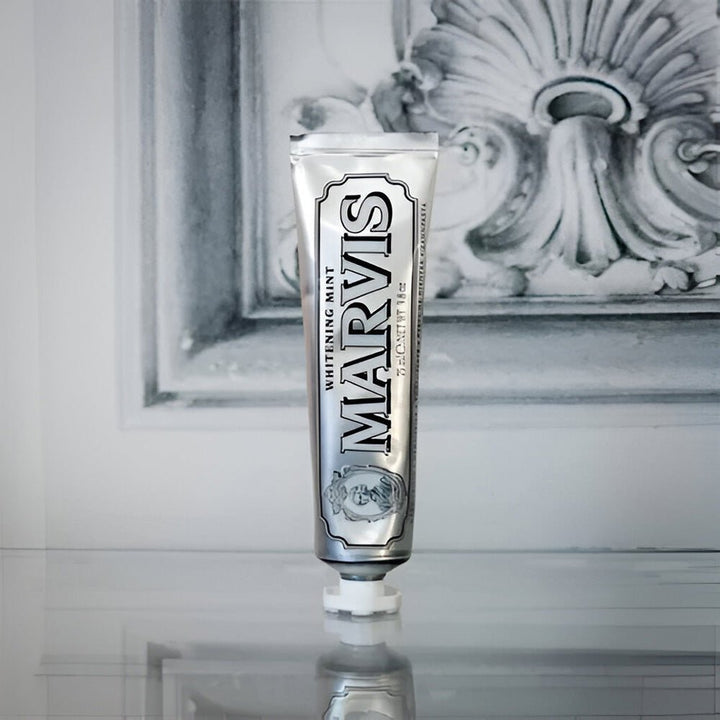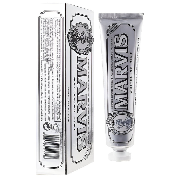 - معجون أسنان مارفيس ذو مفعول تبييض قوي ولطيف على أسنانك من أجل ابتسامة أكثر جمالًا وروعة.