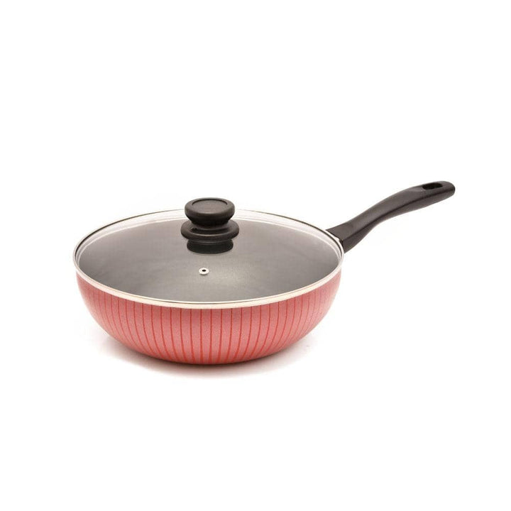 مقلاة الطبخ مصنوعة من التيفال مع مقبض بلاستيكي عازل للحرارة مع غطاء زجاجي 26سم - أنية المنزل