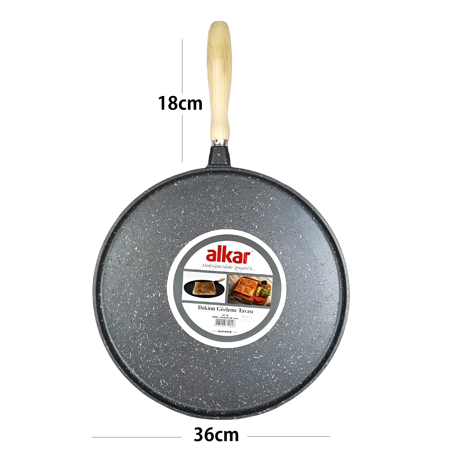 • مقلاة سميكة من حديد الزهر غير لاصق بمقبض خشبي