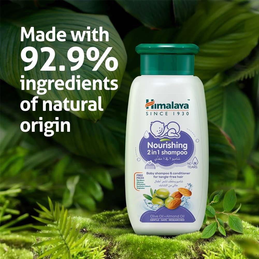 - يوفر شامبو وبلسم الأطفال المغذي 2 في 1 من هيمالايا تنظيفاً وترطيباً لطيفاً لشعر طفلك من دون تجريده من زيوته الطبيعية