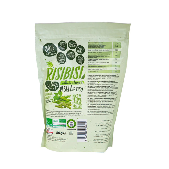 وجبة خفيفة عضوية بالبازلاء والأرز من فاليدورو – 80 جم | صحية ومقرمشة