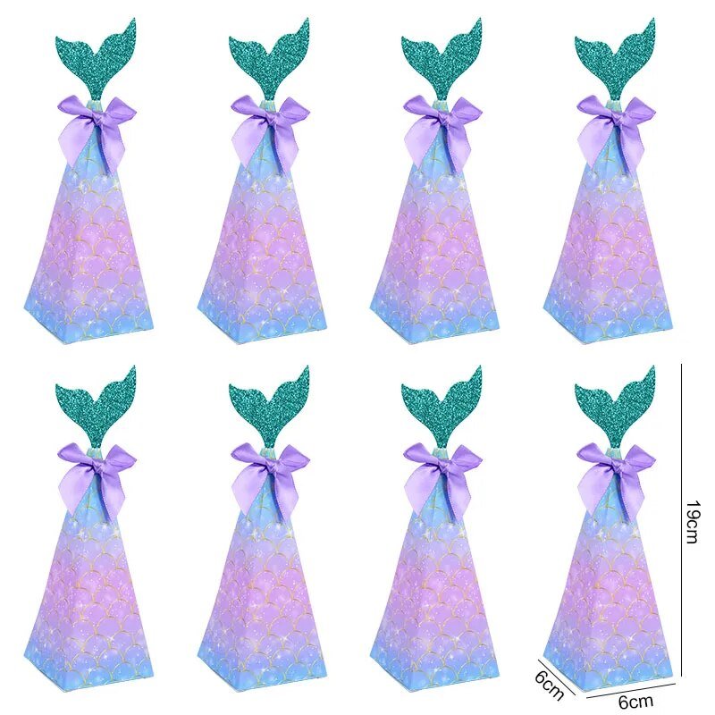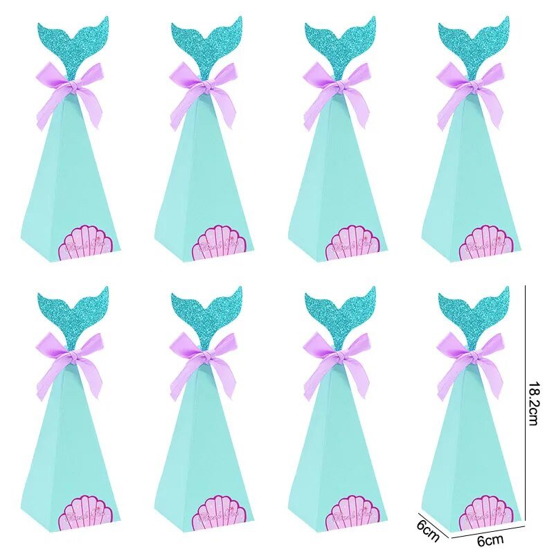 علب توزيعات ورقية لحفلات اعياد الميلاد شكل حورية البحر 10 قطع