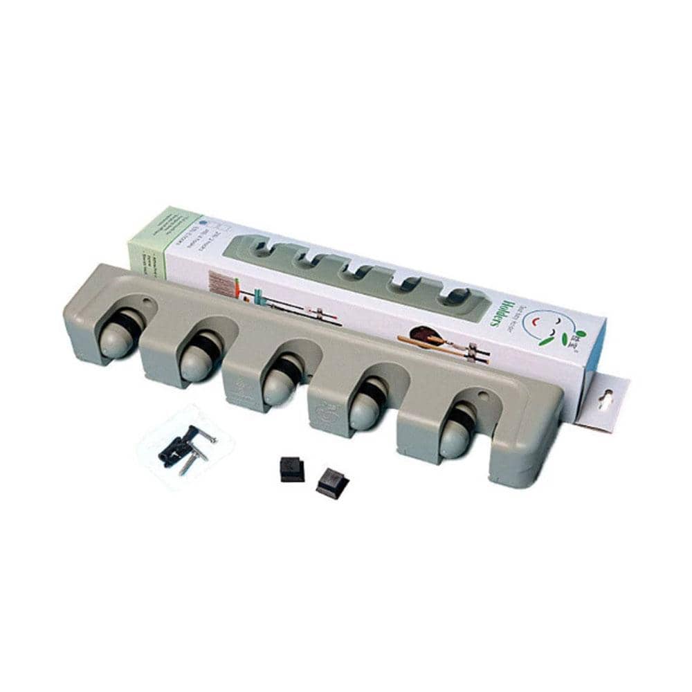 - مكون 5 فتحات و 5 علاقات لحمل و تنظيم المكانس و ادوات النظافة و فوط المطبخ