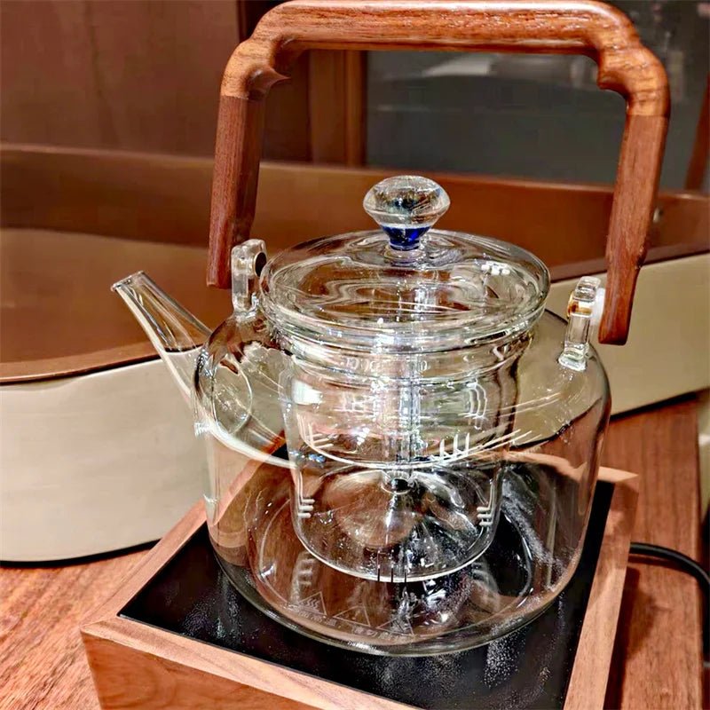 - إبريق شاي زجاجي مقاوم للحرارة مع غطاء مرصع بالنجوم 1500 مل