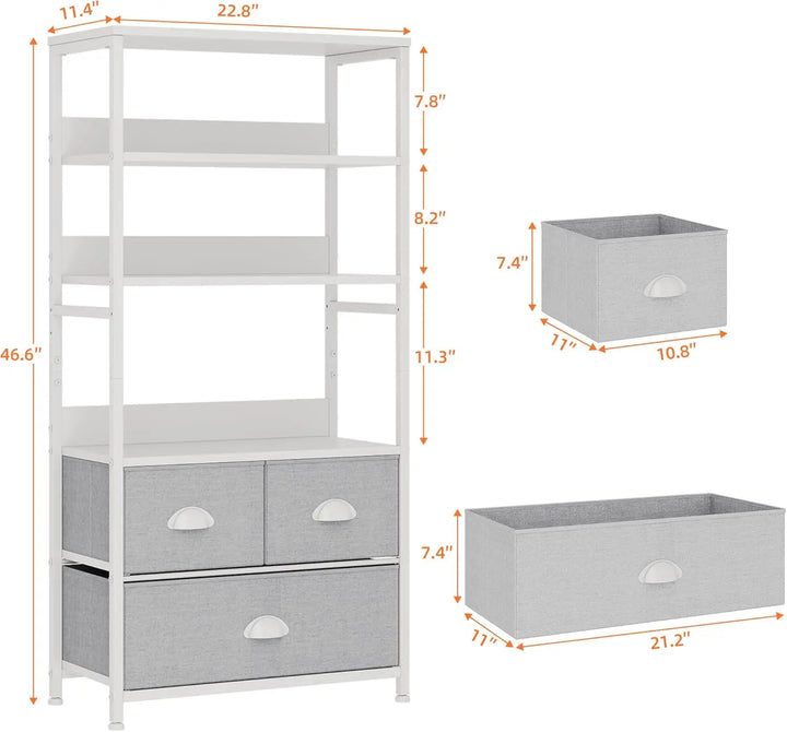 - النوع: وحدة تخزين بأرفف وأدراج قماشية.