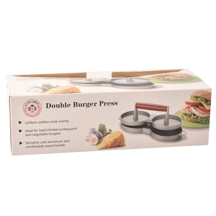 - مكبس برجر دبل لقطعتين بيد خشبيه