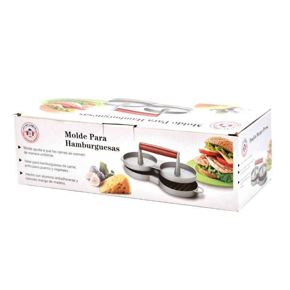 - مكبس برجر دبل لقطعتين بيد خشبيه