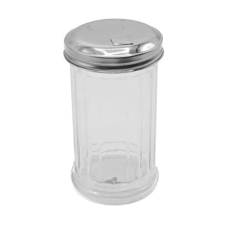 - موزع سكر زجاج شفاف كلاسيكي مع غطاء من الفولاذ المقاوم للصدأ وفوهة رش