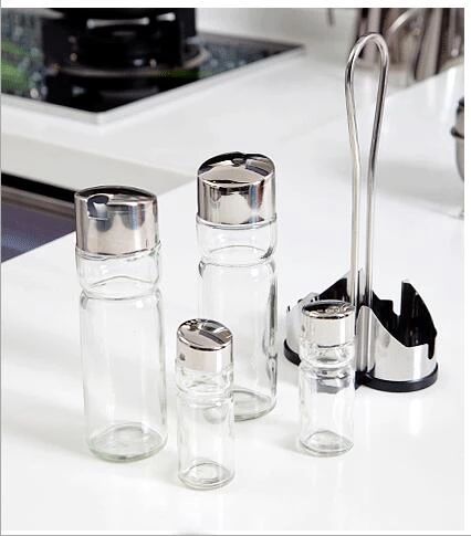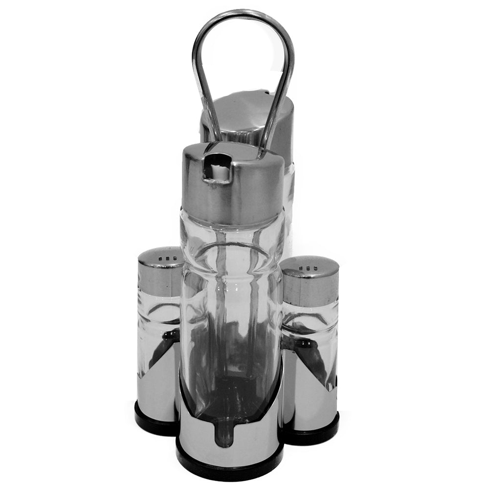 طقم زجاجات زيت وخل وممالح مع حامل-4 قطع