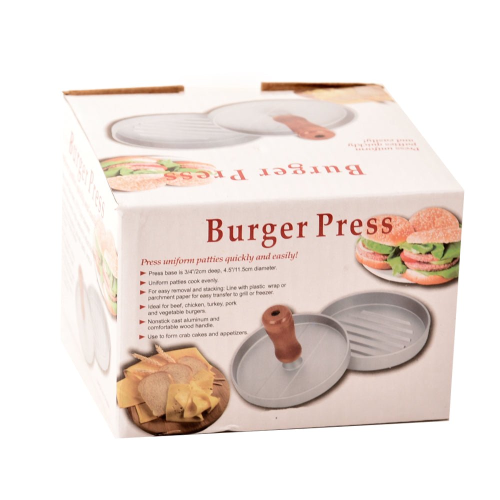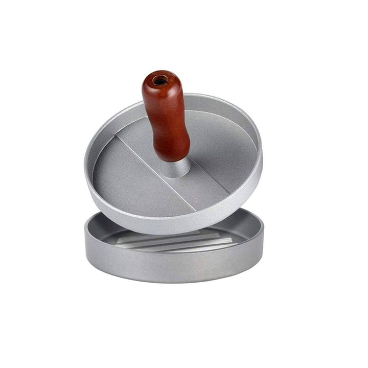 - مكبس برجر دائري الشكل بمقبض خشبي