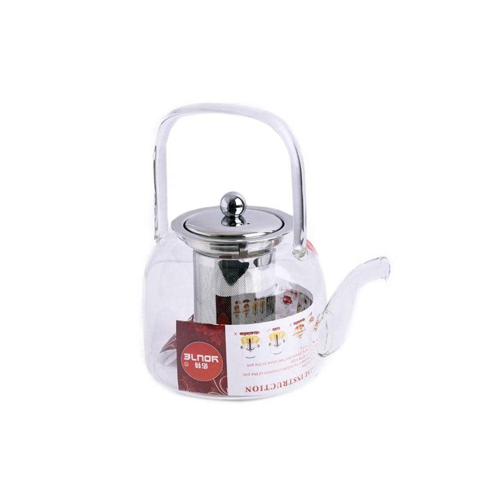 إبريق شاي زجاجي شفاف بمصفاة 1لتر