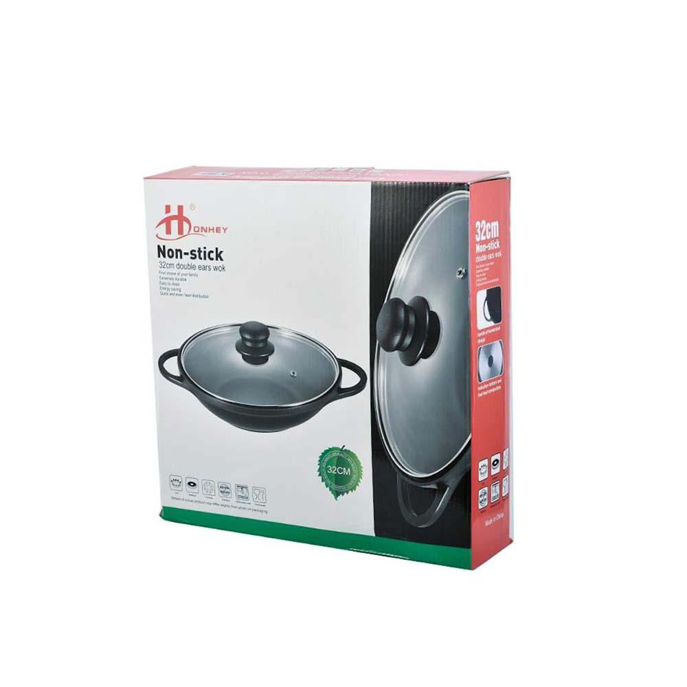 مقلاة عميقة المنيوم غير لاصق بغطاء زجاج ومقابض