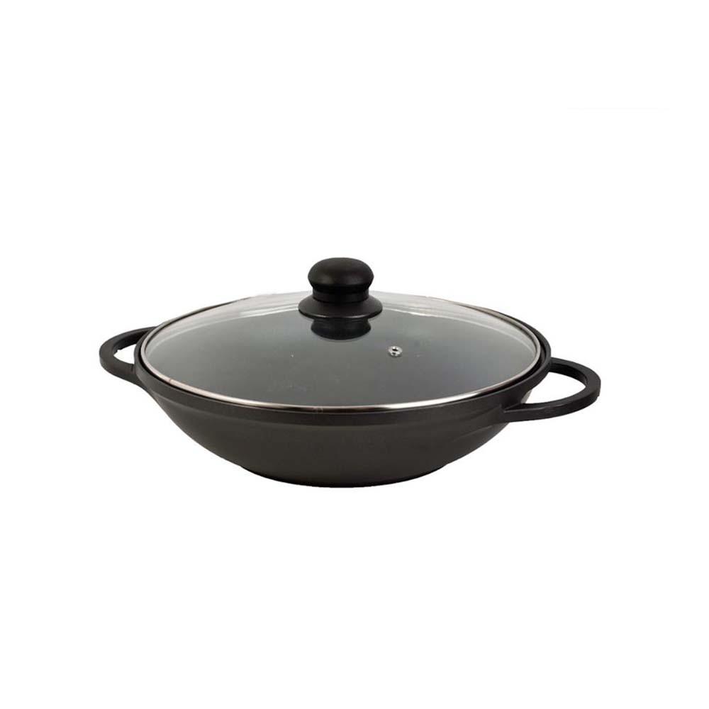 - مقلاة عميقة المنيوم غير لاصق بغطاء زجاج ومقابض