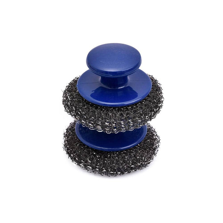 - اسفنجة تنظيف سلك ستانلس ستيل مع مقبض بلاستيك 2 قطعة