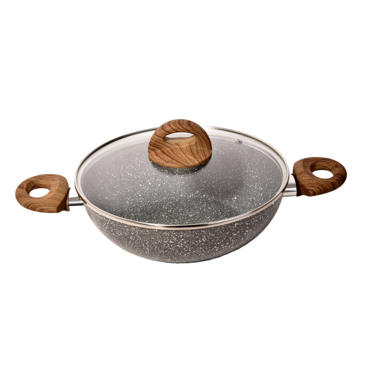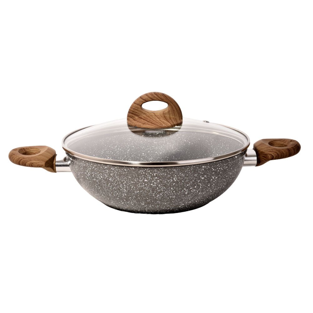 مقلاة عميقة جرانيت غير لاصق مع غطاء-28سم