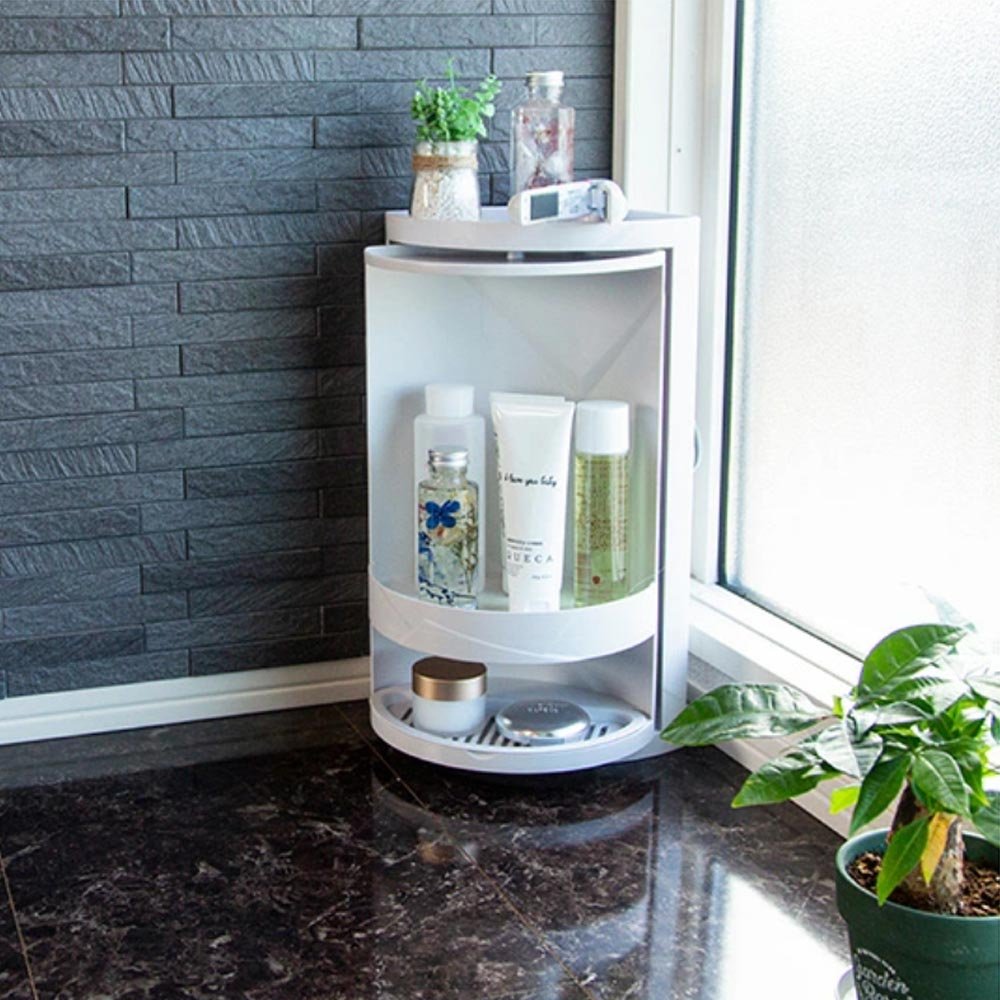 - تصميم مثلث ليوفر مساحة كافية لتخزين أغراض حمامك الأساسية
