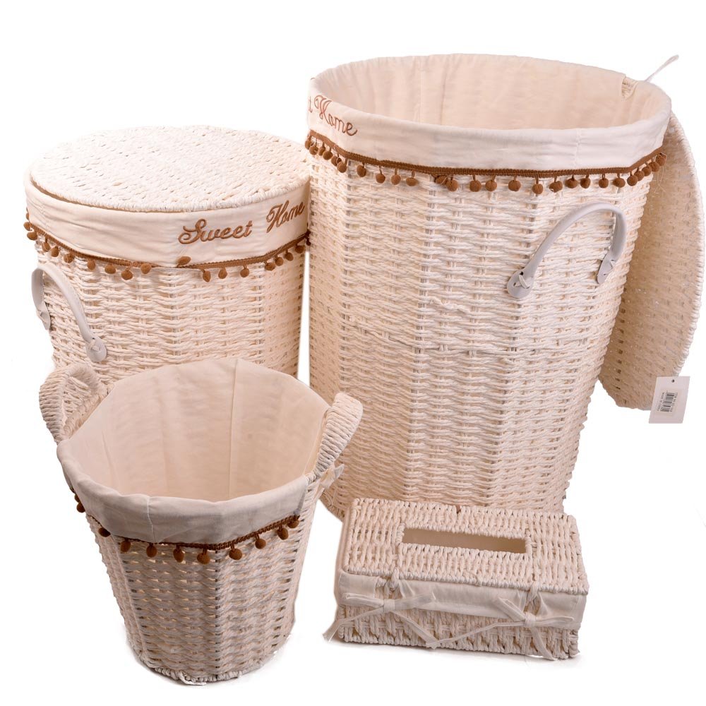 - مكونات الطقم:2 سلة غسيل + سلة للمهملات + علبة للمناديل