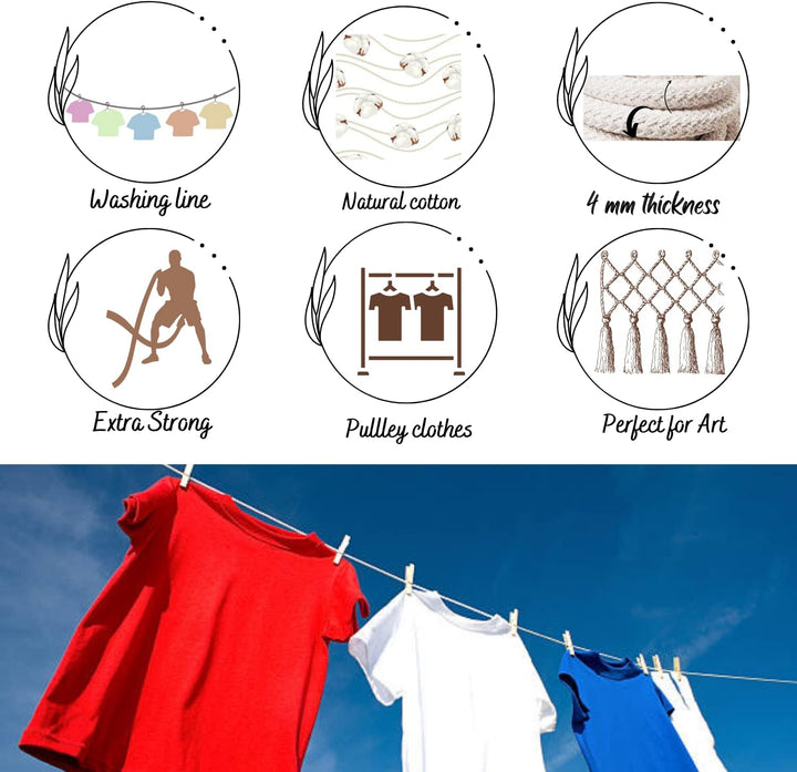 - حبل غسيل من القطن الطبيعي 15متر