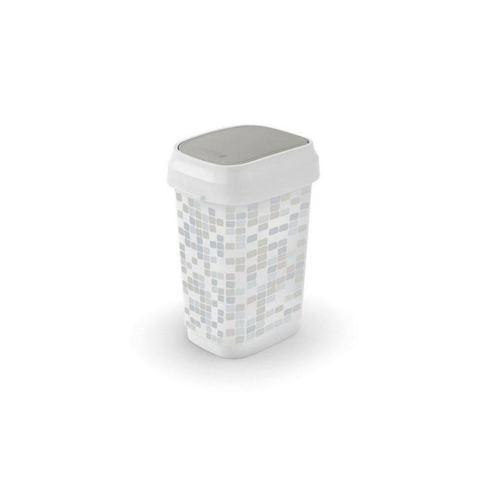 • سلة مهملات بلاستيك بغطاء متأرجح