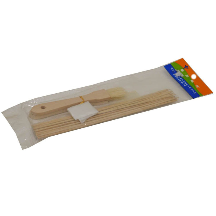 اسياخ شواء مع 2 فراشي للدهن خشب
