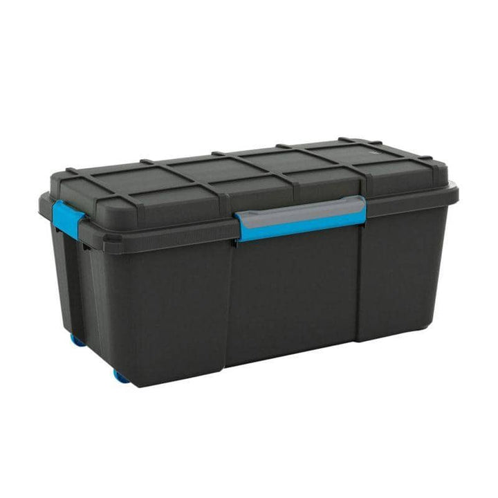 74L صندوق تخزين أسود مع مقابض زرقاء - أنية المنزل