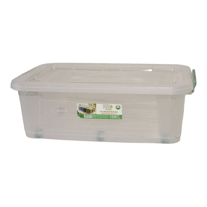 صندوق تخزين بلاستيك مع عجلات شفاف 30 لتر