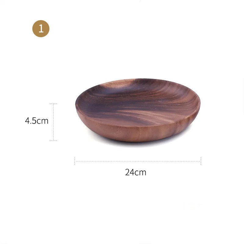 - طبق تقديم دائري بحواف مرتفعة من الخشب