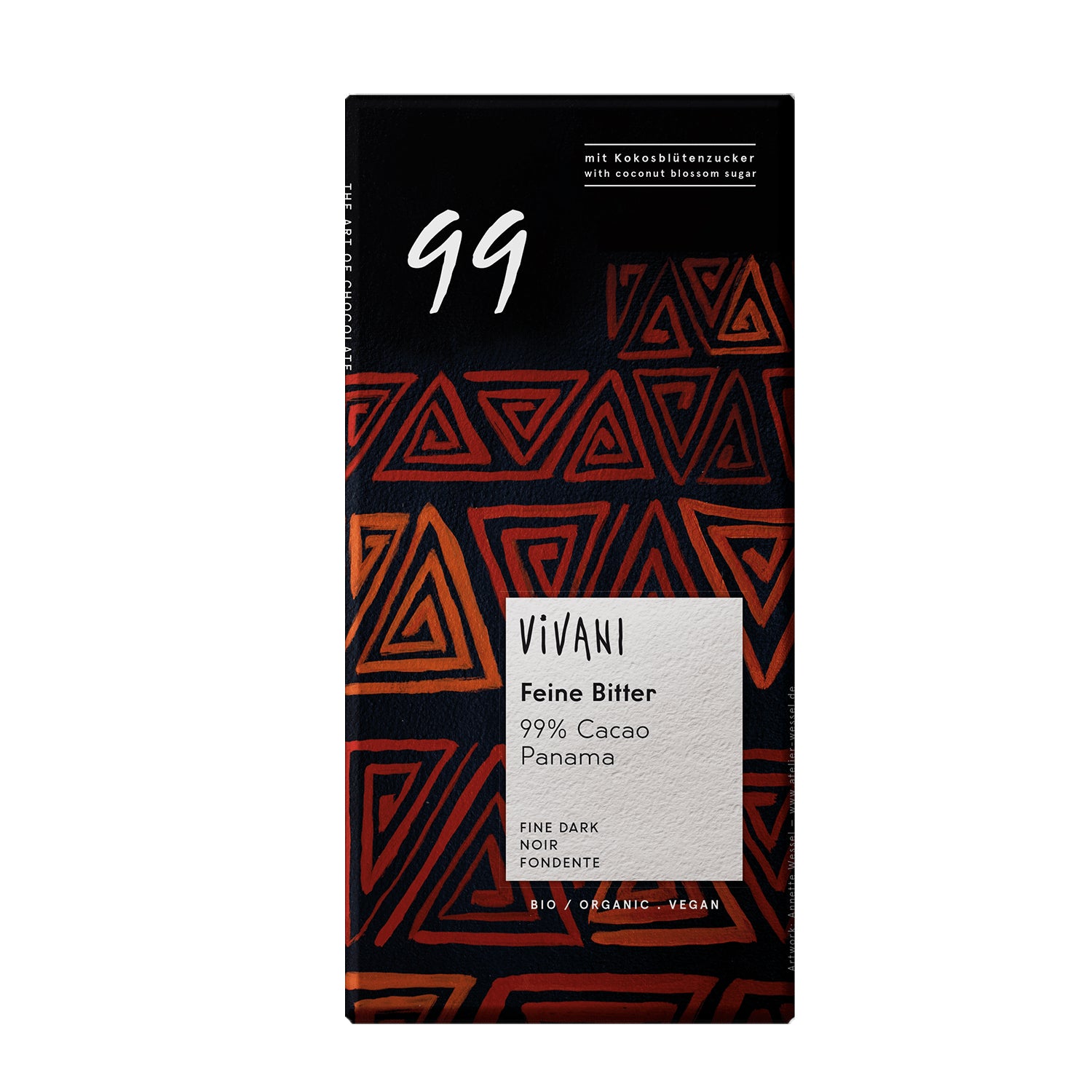 - شوكولاتة فيفاني المرة 99٪ عضوية بطعم الكاكاو الرائع ومذاقها المر قليلا.