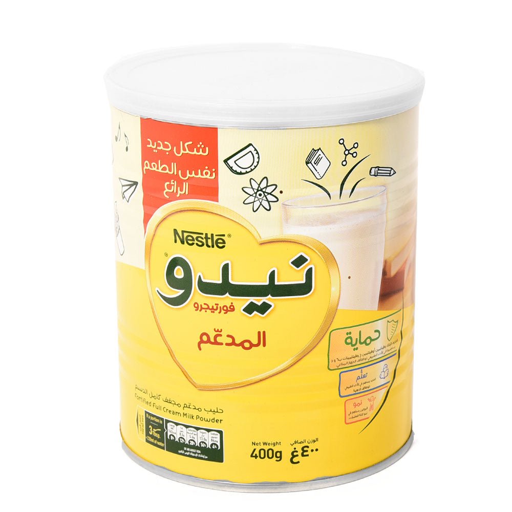 - حليب مدعم مجفف كامل الدسم من نيدو فورتيجرو-400جرام
