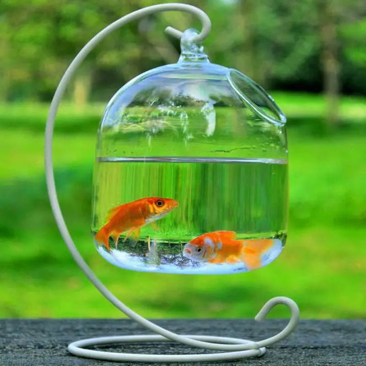 - يسمح التصميم الشفاف لحوض السمك المعلق بمراقبة نمو الأسماك في الداخل