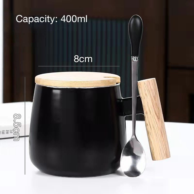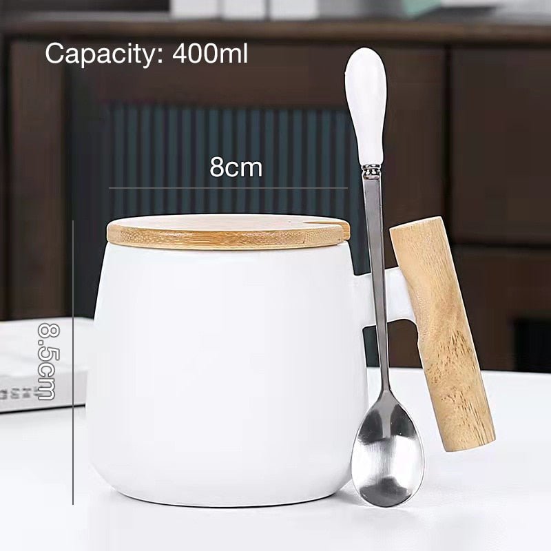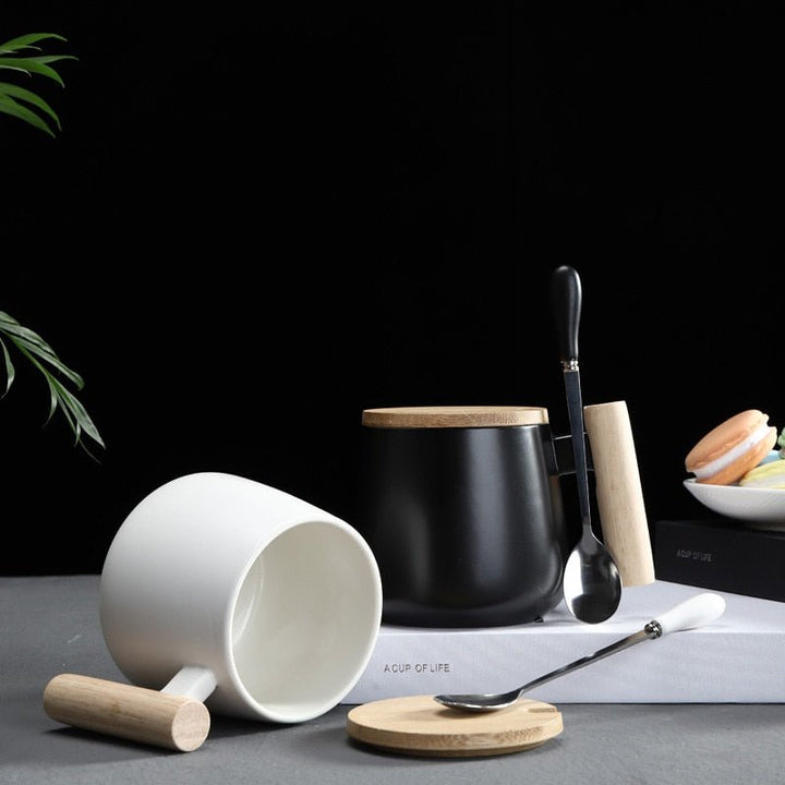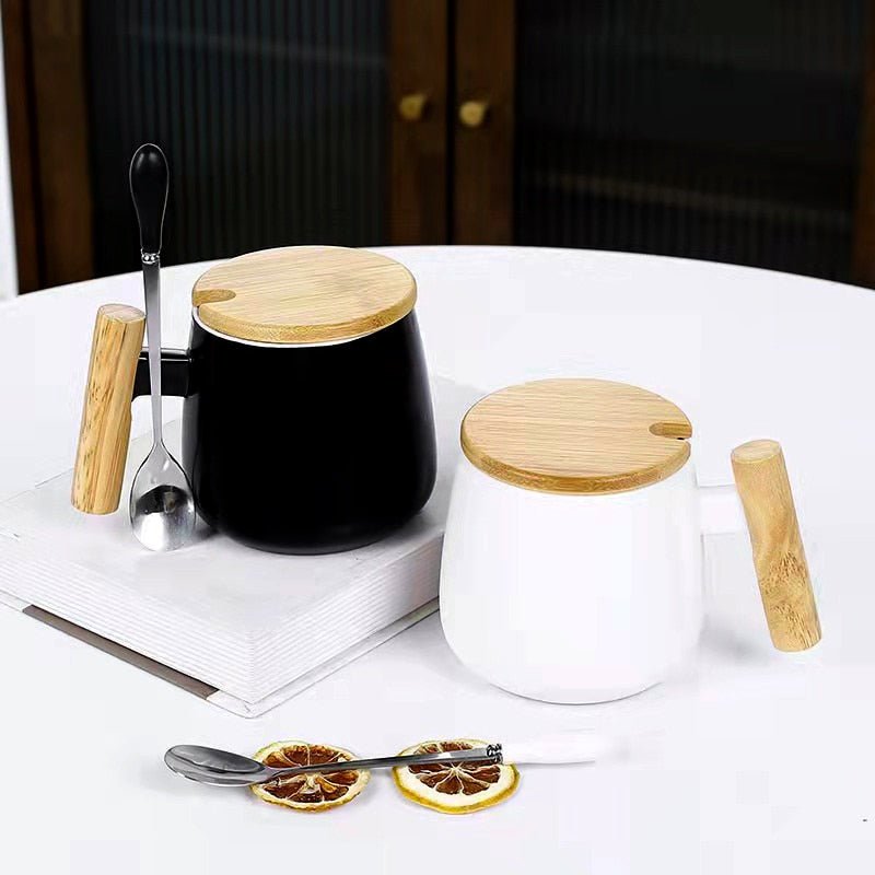 - مجموعة أكواب قهوة سيراميك مكونة من قطعتين بغطاء خشب