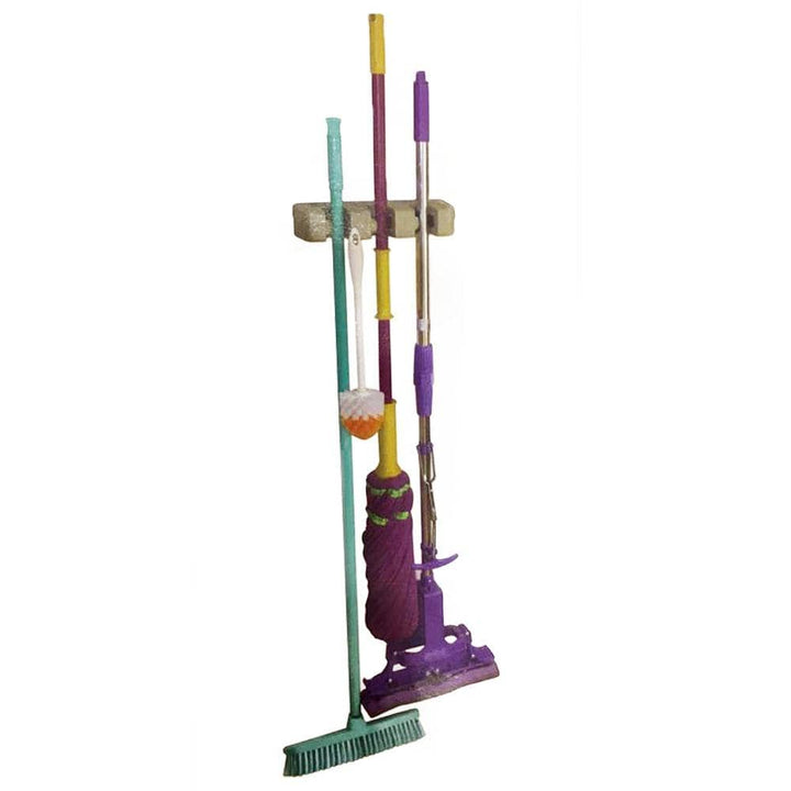 - مكون 3 فتحات و 3 علاقات لحمل و تنظيم المكانس و ادوات النظافة و فوط المطبخ