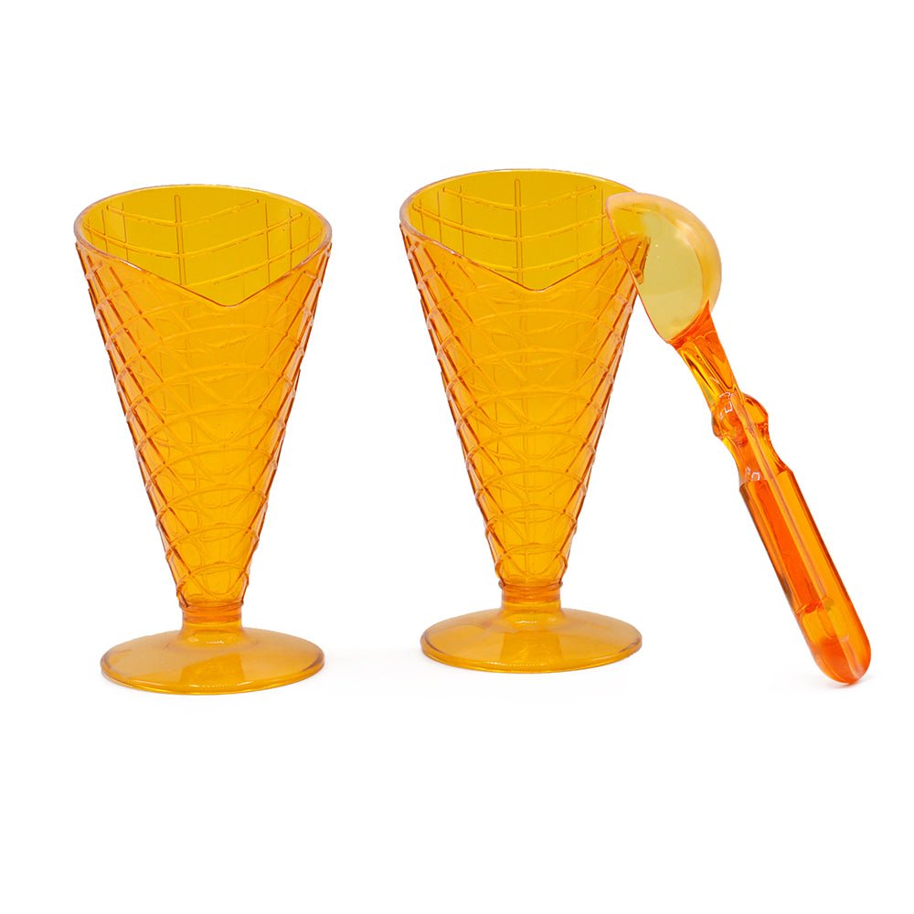 - طقم كاسات ايس كريم بلاستيك مع ملعقة 6قطع شكل بسكويت